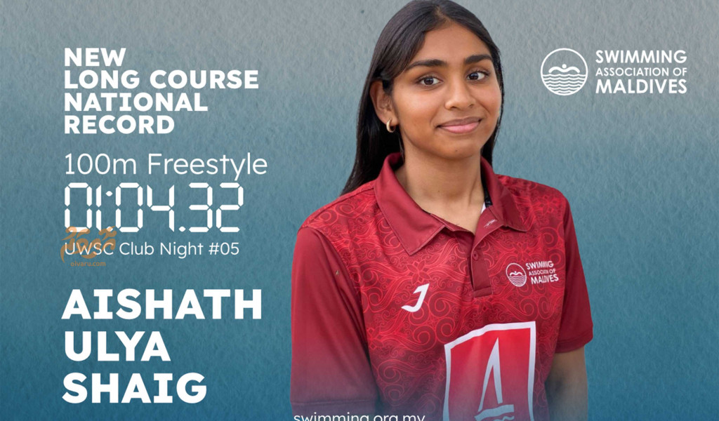 ރާއްޖޭގެ ޒުވާން ފެތުންތެރިޔާ ޢާއިޝަަތު ޢުލްޔާ ޝާއިޤް ގައުމީ ރެކޯޑެއް އައު ކޮށްފިއެވެ.