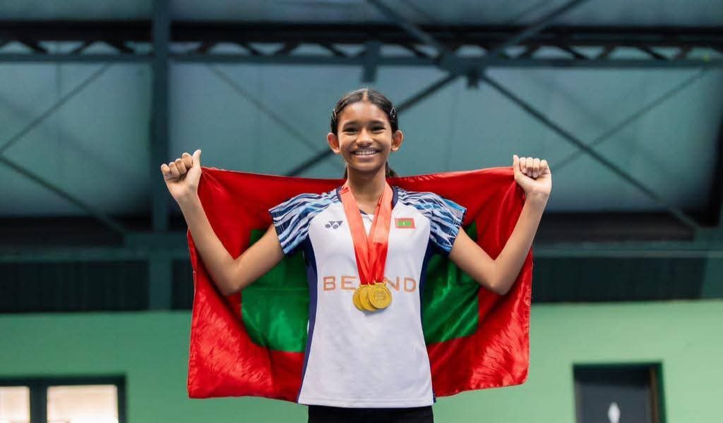 އަރމޭނިއަން ޔޫތު އޯޕަންގައި ބައިވެރިވެ، ބެޑްމިންޓަން ކުޅުންތެރިޔާ ލައިބާ އަހުމަދު މަހުލޫފު ހޯދި ކާމިޔާބަކީ ދިވެހި ގައުމަށް ލިބުނު ބޮޑު ފަހުރެއް ކަމަށް ރައީސް ޑރ. މުހައްމަދު މުއިއްޒު ވިދާޅުވެއްޖެ އެވެ.