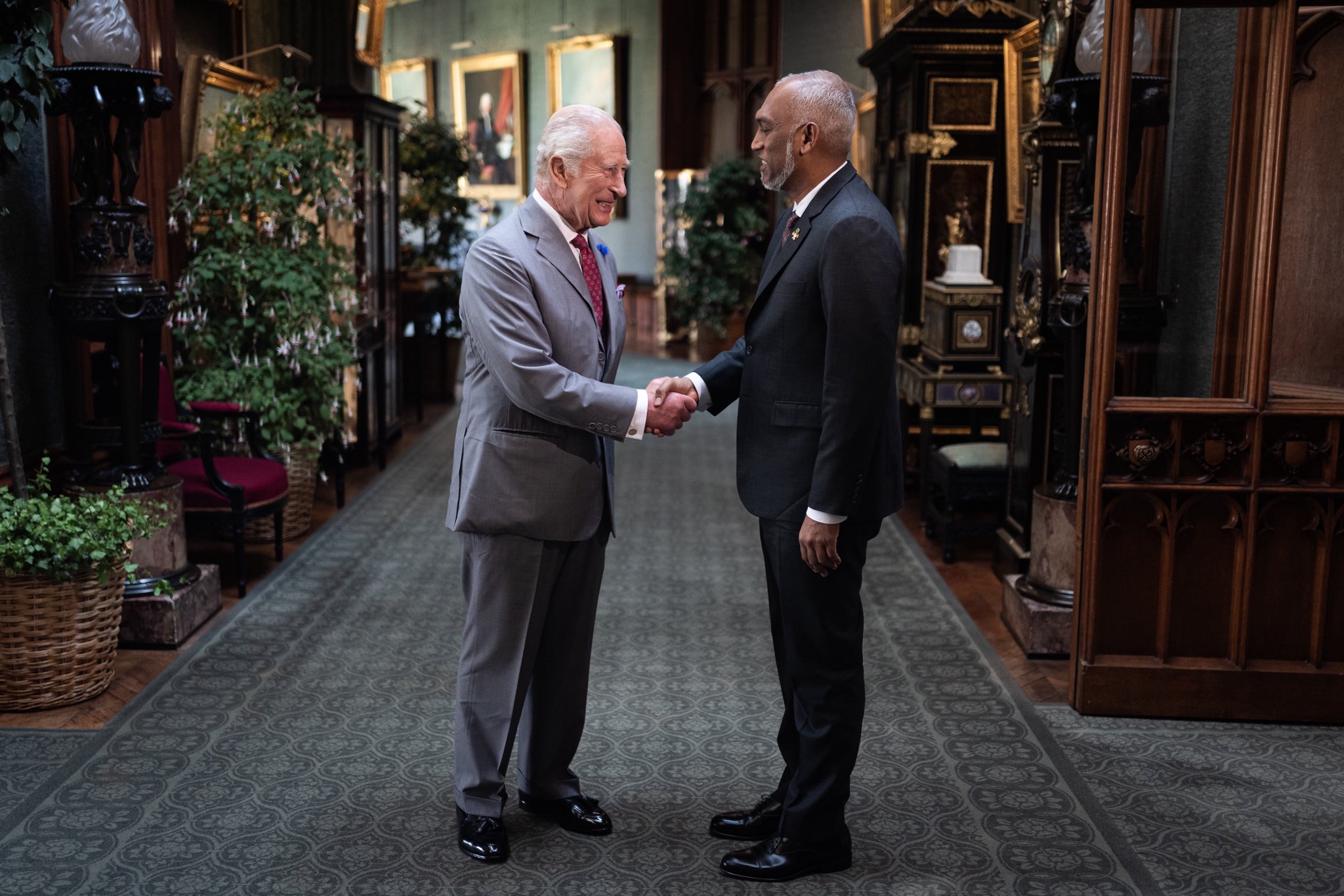 ރައީސް ޑރ. މުހައްމަދު މުއިއްޒު އިނގިރޭސި ވިލާތަށް މިހާރު ކުރައްވަމުން ގެންދަވާ ދަތުރުފުޅުގެ ތެރެއިން އިނގިރޭސި ވިލާތުގެ ރަސްގެފާނު ޗާލްސްއާ މިއަދު ބައްދަލު ކުރައްވައިފި އެވެ.