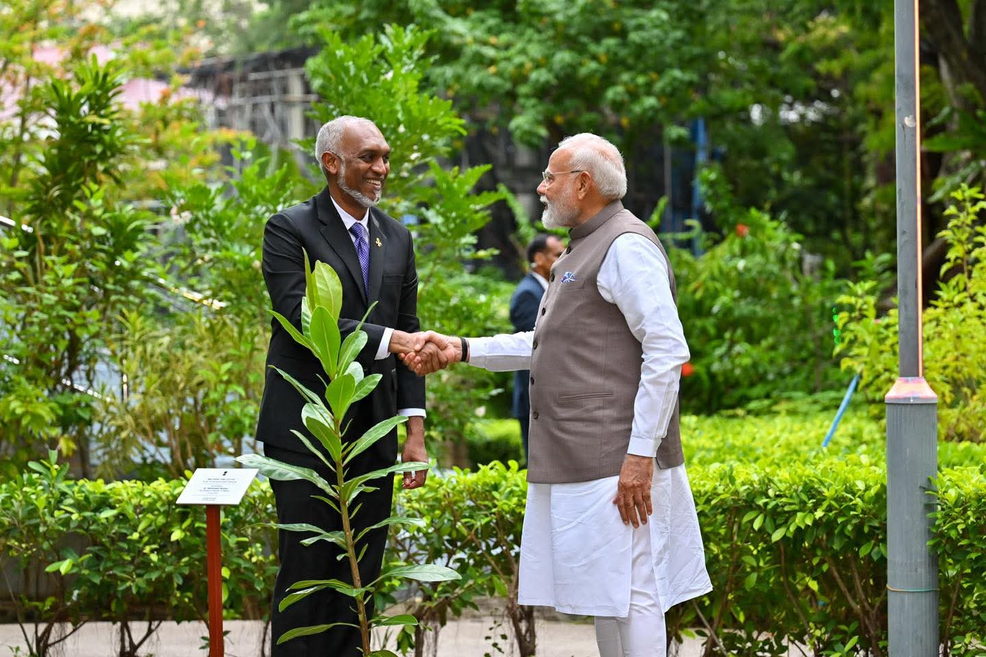 މޯދީ އިއްޔެ ހެނދުނު ރާއްޖެ ވަޑައިގެންނެވީ ރައީސް މުއިއްޒުގެ ދައުވަތަކަށެވެ. މޯދީގެ ދަތުރުފުޅުގެ ތެރެއިން އިއްޔެ ވަނީ ރާއްޖެ އާއި އިންޑިއާއާ ދެމެދު މުހިންމު 8 އެއްބަސްވުމެއްގައި ވެސް ސޮއިކޮށްފައެވެ
